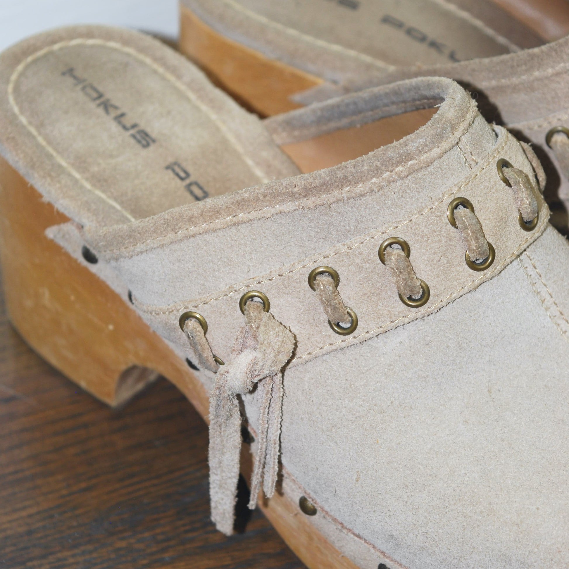 Vintage Hokus Pokus Wooden Suede Leather Platform Mules Clogs